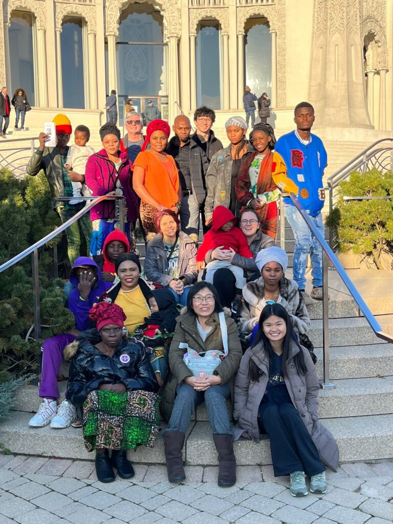 On Thanksgiving weekend 2023, a group representing six families made the 200-mile trip to the Bahá’í House of Worship in Wilmette from the Galesburg, Illinois cluster. Some of these Bahá’ís, originally from the Democratic Republic of the Congo and Tanzania, have been living in the United States for only a few months. During their visit they viewed the Cornerstone, sang prayers in the Auditorium and studied materials on enhancing family life. Here are some of their reflections, as translated from Swahili: